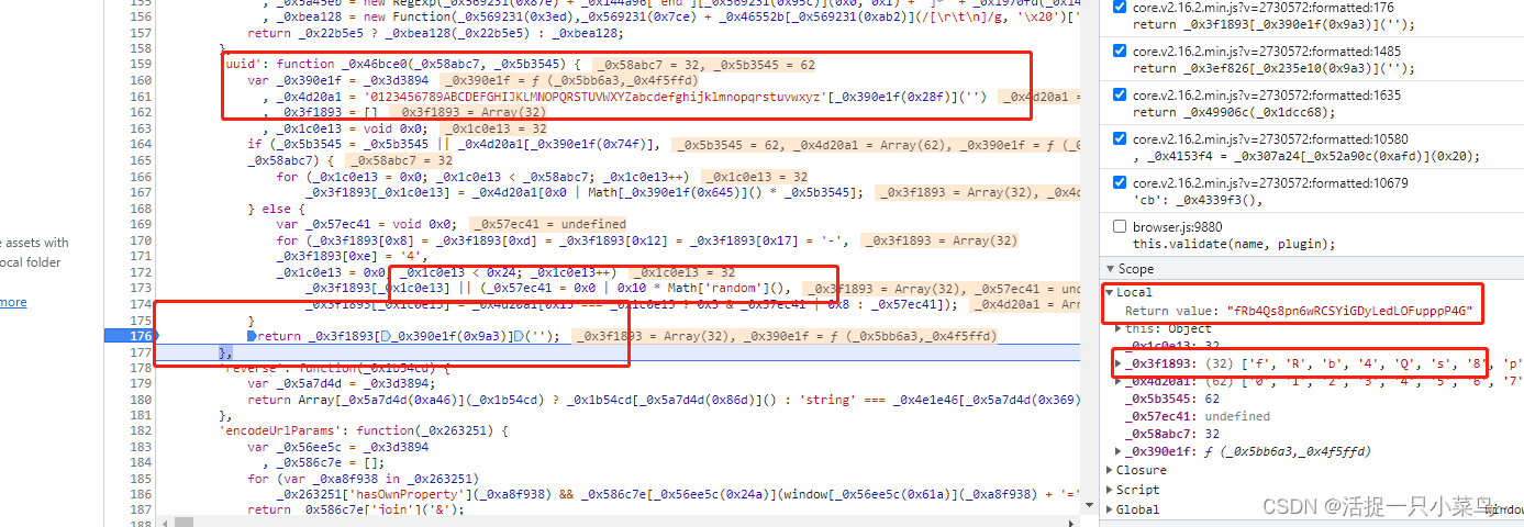 断点调试发现这个版本的某盾js是经过混淆过后的,不能直观的进行阅读,但是这也不能难倒我们,我们继续跟进